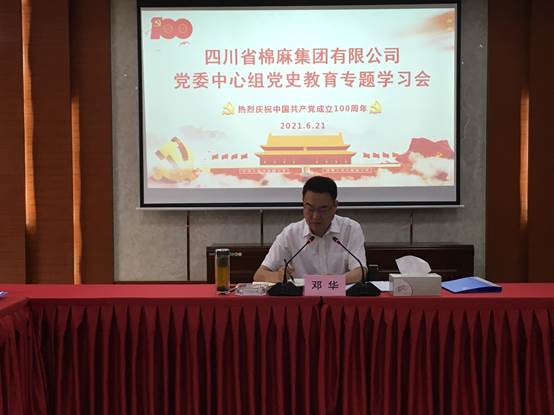 在小結講話中,鄧華要求,一是堅定制度自信,增強制度自覺。要堅定理想信念,永葆對黨絕對忠誠的政治品格;要樹立辯證史觀,正確看待社會主義革命和建設時期歷史;要牢牢把握規律,不斷強化走中國特色社會主義道路堅定決心;要賡續精神血脈,大力弘揚艱苦奮斗的創業精神。二是提高政治站位,扎實學習教育。無論集團層面,還是各黨支部、各部門、各子(分)公司都要根據省社黨組及集團公司黨委安排,高標準高質量組織好“四史”學習教育。三是弘揚偉大精神,不斷“攢勁”聚力。要?從黨史中涵養“鋼少氣多骨頭硬”的精氣神,攢“拼勁”,勇于面對各種風險挑戰,著力破解各種制約發展的瓶頸和問題,奮力推進各業務板塊高質量發展;要從黨史中厚植“一枝一葉總關情”的為民情懷,攢“親勁”,各級黨員干部特別是班子成員,要主動帶頭深入基層一線,苦干實干,在項目、業務落地落實中出智出力解難題,在“我為群眾辦實事”實踐活動中為職工群眾謀福利;從黨史中弘揚“敢教日月換新天”的奮斗精神,攢“干勁”,各級黨員干部要弘揚艱苦奮斗的精神,以夢為馬,以實干為鞭,立下硬決心、拿出硬舉措,敢挑最重的擔子,敢啃最硬的骨頭,敢接最燙的山芋,躍馬揚鞭,把“小我”融入到“大我”中,把青春融入到棉麻高質量發展的進程中,以不負韶華、不負時代的姿態,在新征程的路上吹起想為、敢為、善為的擔當實干之風